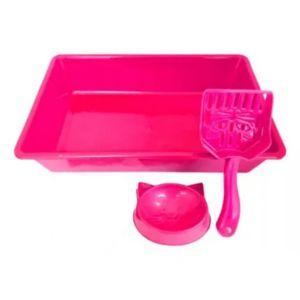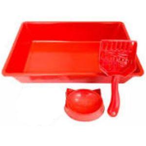 KIT GATO VERMELHO (BANDEJA, 2 COMEDOURO/BEBEDOURO E PAZINHA)